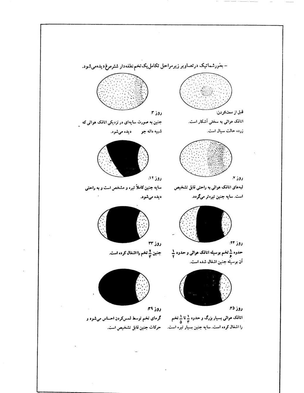 بدیهی است مراحل فوق بر اساس شرایط جوجه کشی و کیفیت تخم ممکن است تعجیل و یا به تعویق افتد.